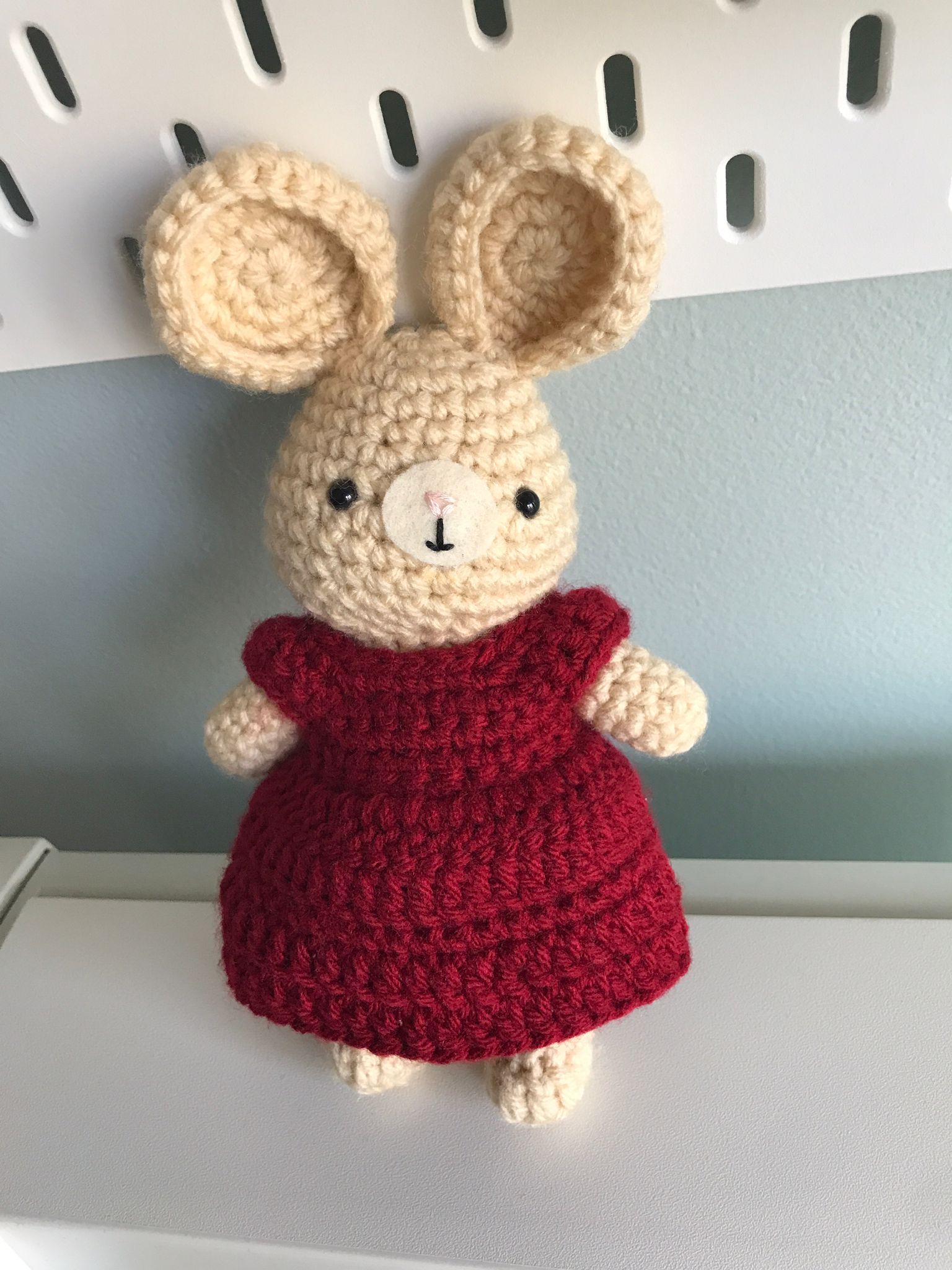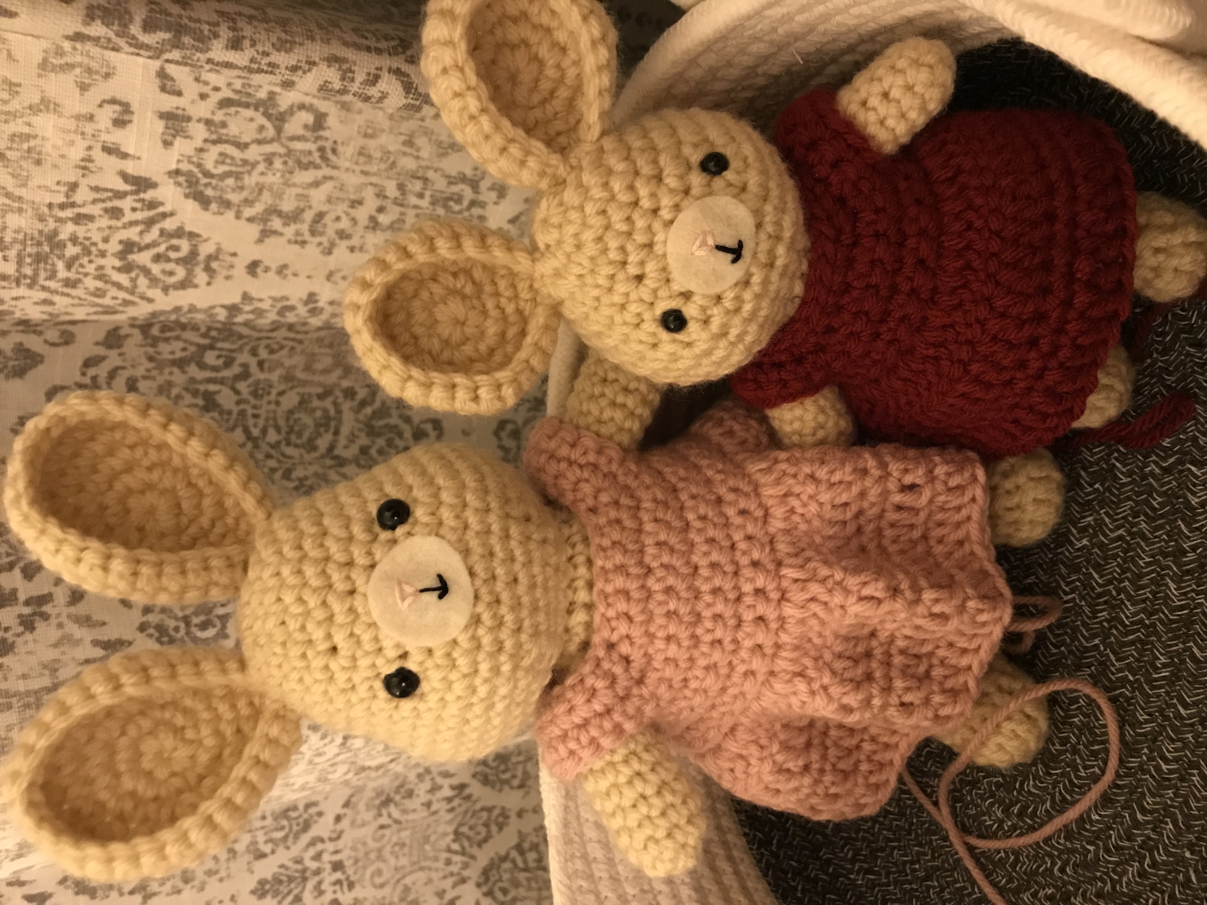 I then made each bunny a dress with an opening in the back to make room for a pom-pom tail, which was such a fun detail. For some reason, I then lost interest and never bothered to write up the pattern, even though I was so pleased with them.